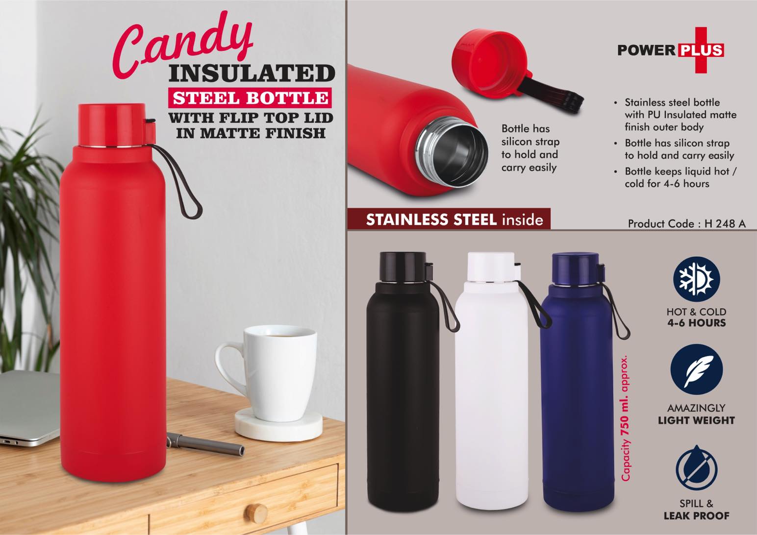 Candy: Insulated Steel Bottle in Matte Finish | Keeps Hot & Cold for 4-6 Hours | Capacity 750 ml approx
