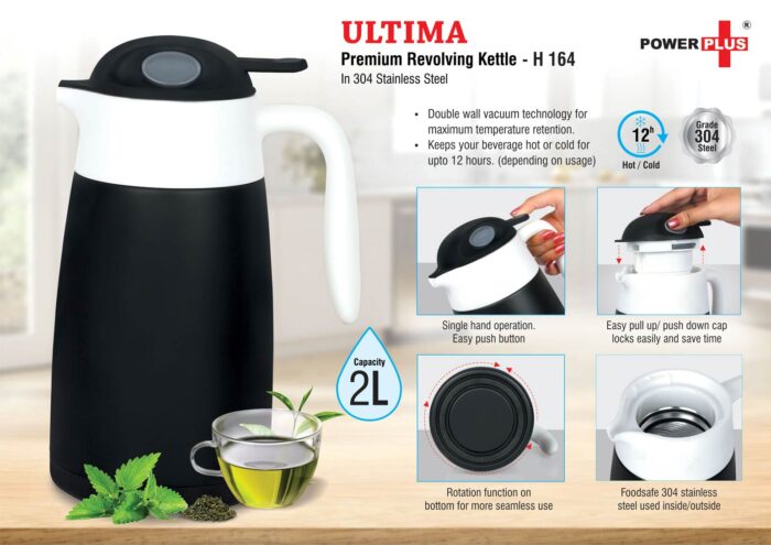 Ultima: Premium revolving kettle in stainless steel (2L approx) | 304 Steel Inside & Outside